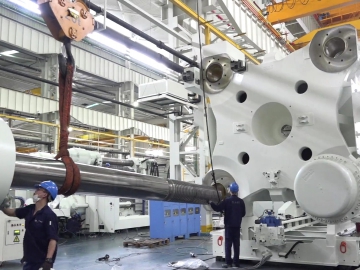 這臺為海外客戶訂制的超大型二板機(jī),目前已順利裝配完成,裝配過程歷時50天。海天二板機(jī)制造基地前后安排了優(yōu)秀的專項技師和多能工共200多人一起協(xié)作完成了整個裝配過程。