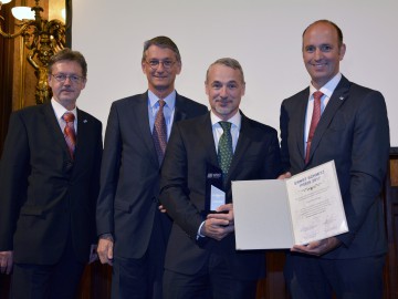 7月18日,奧地利塑料技術(shù)促進(jìn)會(GFKT)授予美國ENGEL機(jī)械公司應(yīng)用技術(shù)主管Joachim Kragl恩斯特?施米茨獎(Ernst Schmitz prize),在頒獎儀式上,公司充分肯定了Joachim Kragl在人與技術(shù)的和諧互動中所作的貢獻(xiàn)。