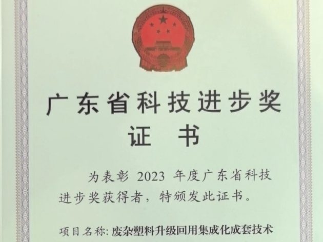 10月17日,全省科學(xué)技術(shù)大會隆重召開。在此次大會上,頒發(fā)了2023年度廣東省科學(xué)技術(shù)獎。由金發(fā)科技股份有限公司牽頭完成的“廢雜塑料升級回用集成化成套技術(shù)及產(chǎn)業(yè)化應(yīng)用”項目,榮獲廣東省科技進步一等獎。