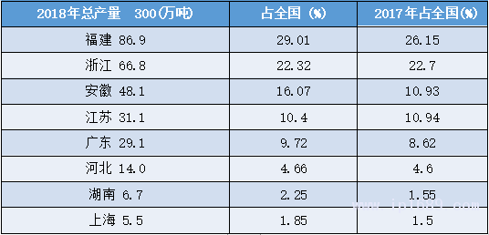 我國人造革合成革主要產區(qū)格局變動不大,主要生產省份在東部,上述華東5省市產量占全國總量80%。福建、浙江是最大生產省份。