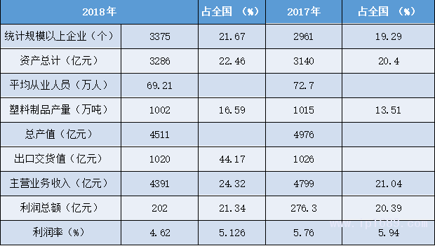2016-2018:全國塑料制品業(yè)利潤總額3702億元,年均1234億元;同期廣東總利潤726億元,年均242億元,占全國19.61%,接近五分之一。