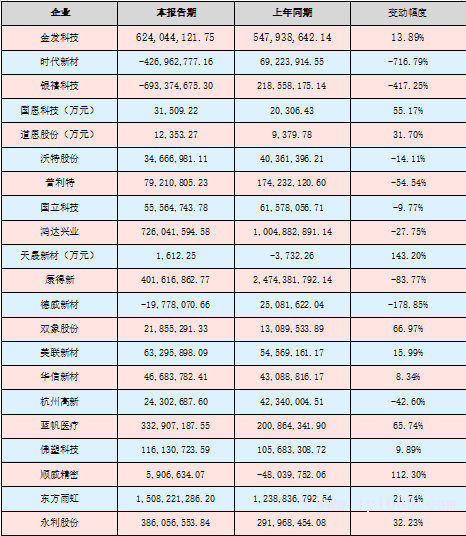 同時,也有時代新材、銀禧科技、德威新材等企業(yè)在利潤增長上出現(xiàn)了嚴(yán)重的偏差,大跌150%以上。