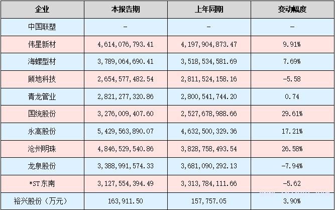 從各項(xiàng)數(shù)據(jù)來看,上年度運(yùn)營狀況良好的企業(yè)主要有偉星新材、青龍管業(yè)、大東南、裕興股份等,其在營收、利潤、總資產(chǎn)等多方面均取得了較大幅度的增長。