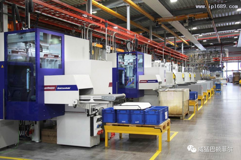 ■? 威猛巴頓菲爾注塑機(jī)——最前面的是最新交付的SmartPower 35,它擁有”一站式”內(nèi)部集成單元和威猛4.0集成化系統(tǒng)(圖片來自威猛巴頓菲爾)
