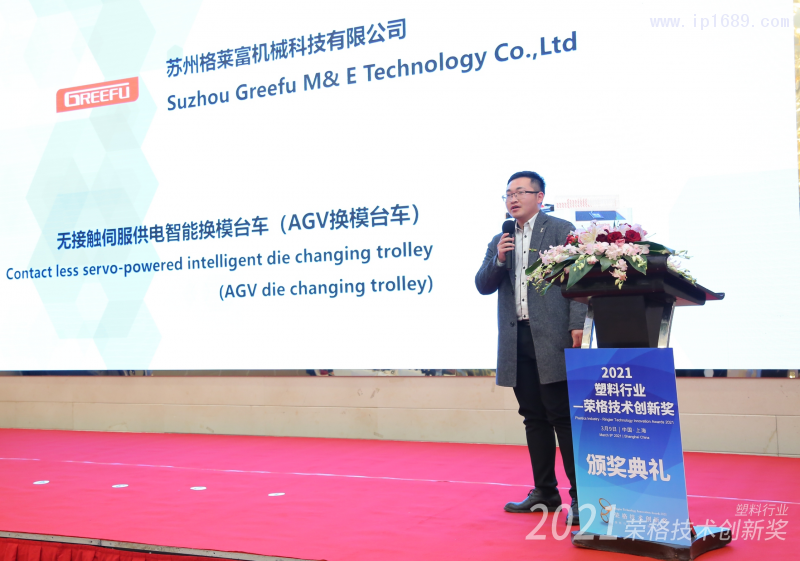 蘇州格萊富機(jī)械科技有限公司憑借突破性的產(chǎn)品創(chuàng)新,格萊富AGV無(wú)軌換模臺(tái)車(chē)成功斬獲2021塑料行業(yè)—榮格技術(shù)創(chuàng)新獎(jiǎng)!