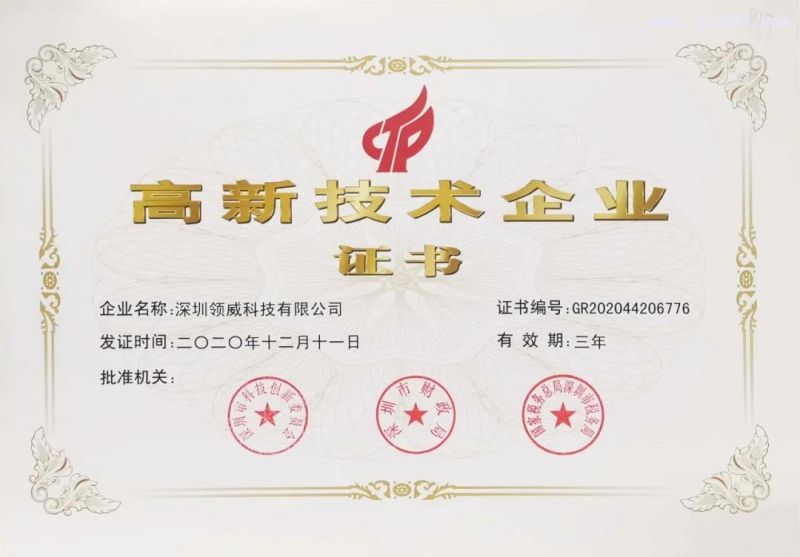 2008年,力勁集團深圳領(lǐng)威科技有限公司入選首批國家級“高新技術(shù)企業(yè)”,每三年進行一次復(fù)審,迄今已是第五次,均連續(xù)通過認定。