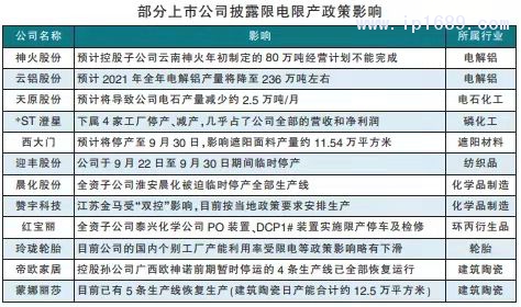 此外,限電風(fēng)暴下,多家上市企業(yè)如浙江迎豐科技、宜賓天原集團(tuán)等甚至因無法生產(chǎn)而公告停產(chǎn),足見其影響頗深。