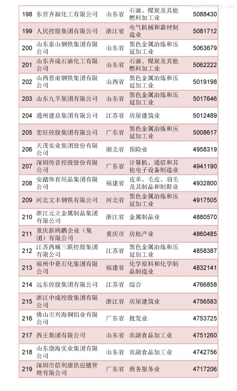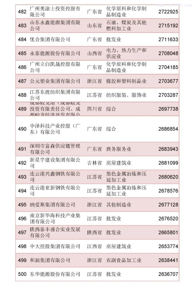 2022中國(guó)民營(yíng)企業(yè)500強(qiáng)榜單