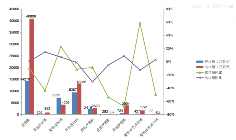 根據(jù)海關(guān)總署數(shù)據(jù),2023年1~3月,中國大陸塑料機(jī)械進(jìn)出口總額25億美元。其中,進(jìn)口額8億美元,同比增長(zhǎng)6.1%;出口額17億美元,同比增長(zhǎng)4.9%;貿(mào)易順差9億美元,同比增長(zhǎng)3.8%。