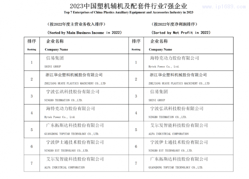 塑機(jī)輔機(jī)及配套件7強(qiáng):新增兩家企業(yè)