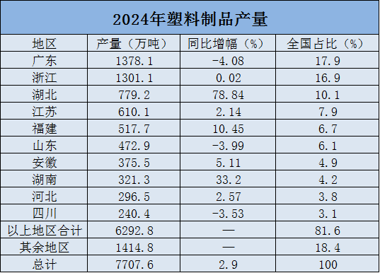 據(jù)國家統(tǒng)計(jì)局?jǐn)?shù)據(jù),2024年全國塑料制品行業(yè)匯總統(tǒng)計(jì)企業(yè)完成產(chǎn)量7707.6萬噸,同比增長2.9%。