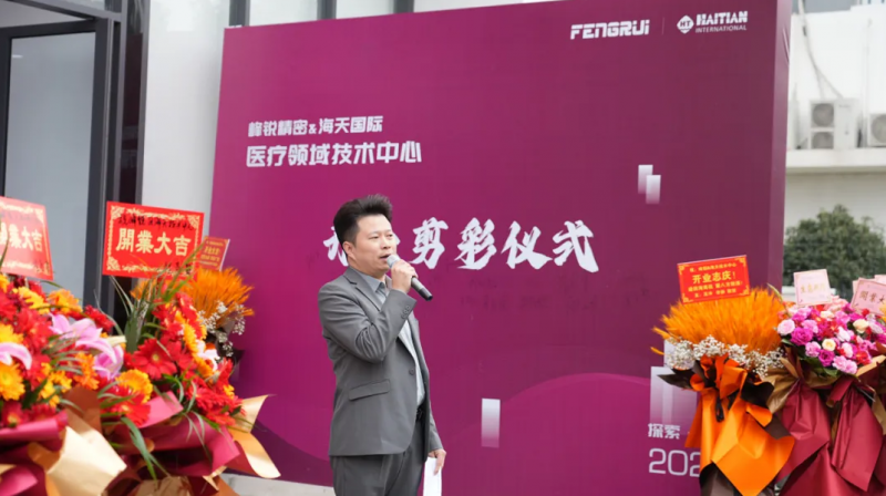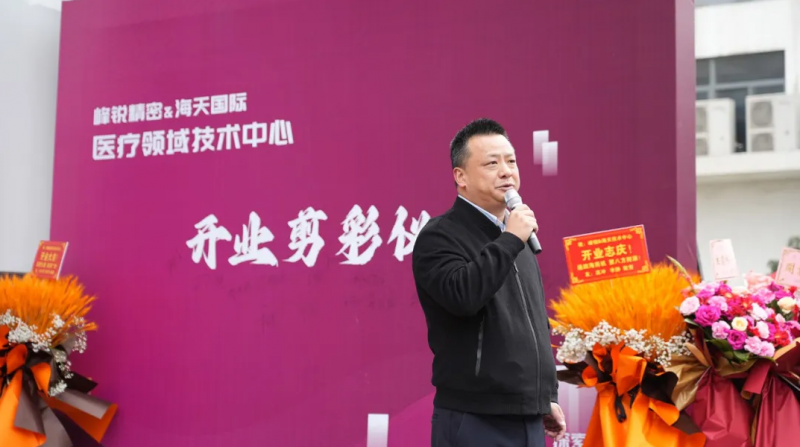 開業(yè)慶典上,海天國際與峰銳精密的高層領(lǐng)導(dǎo)齊聚一堂。海天塑機(jī)全球行業(yè)線副總經(jīng)理徐斌、峰銳精密總經(jīng)理陳林,代表雙方企業(yè)上臺致辭,表達(dá)了對未來合作的期待與信心。他們強(qiáng)調(diào),蘇州醫(yī)療技術(shù)中心的成立,不僅是對醫(yī)療注塑領(lǐng)域深度探索的重要布局,更是雙方共同推動行業(yè)發(fā)展的有力證明。