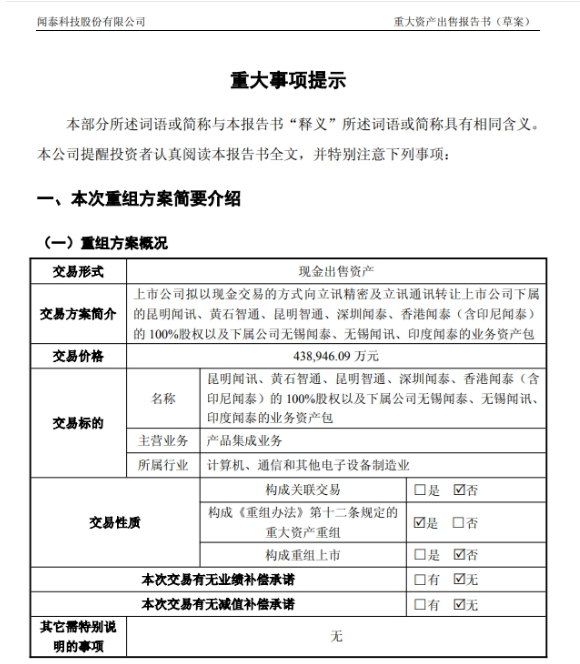 5月16日晚,聞泰科技發(fā)布了《重大資產(chǎn)出售報(bào)告書(草案)》,擬以現(xiàn)金交易方式向立訊精密及立訊通訊轉(zhuǎn)讓昆明聞?dòng)?、黃石智通、昆明智通、深圳聞泰、香港聞泰(含印尼聞泰)的100%股權(quán)以及下屬公司無錫聞泰、無錫聞?dòng)?、印度聞泰的業(yè)務(wù)資產(chǎn)包,交易價(jià)格為43.89億元。
