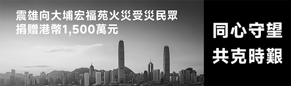 震雄集團(tuán)宣布震雄投資向香港特別行政區(qū)政府設(shè)立的「大埔宏福苑援助基金」捐出港幣1,500萬元,以支援受此次嚴(yán)重火災(zāi)波及的居民,以紓解其燃眉之急。