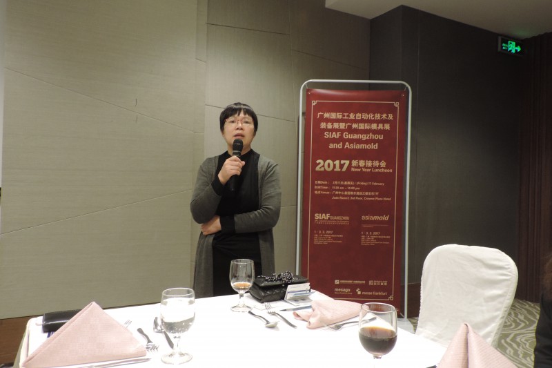 會(huì)議主持人代表光亞法蘭克福對(duì)在場(chǎng)嘉賓致以新春的問(wèn)候和祝福,并介紹了3月展會(huì)的相關(guān)情況。“今年3月1-3日是我們廣州國(guó)際工業(yè)自動(dòng)化技術(shù)及裝備展覽會(huì)和廣州國(guó)際模具展覽會(huì)同期開(kāi)展的第一年,希望廣大協(xié)會(huì)、企業(yè)和媒體的朋友們多多支持,我們也借這個(gè)機(jī)會(huì)向大家預(yù)告一下本次本展會(huì)的情況,我們本次展會(huì)共有超過(guò)700家參展商,包括:工業(yè)自動(dòng)化,工業(yè)機(jī)器人,模具制造和3D打印等全系列產(chǎn)業(yè)鏈,超過(guò)160個(gè)品牌采購(gòu)團(tuán),100場(chǎng)專業(yè)研討會(huì)議和峰會(huì),為大家提供一個(gè)全方位展示智能制造的推廣平臺(tái)。”