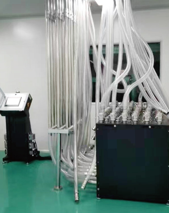 原料通過截料式吸料盒由原料分配站分配到每臺注塑機。真空管路配備分離式真空分離閥,通過膜片對吸風管氣流的接通與關(guān)閉進行控制。全密閉式的輸送過程,零污染,保證了無塵車間的清潔。