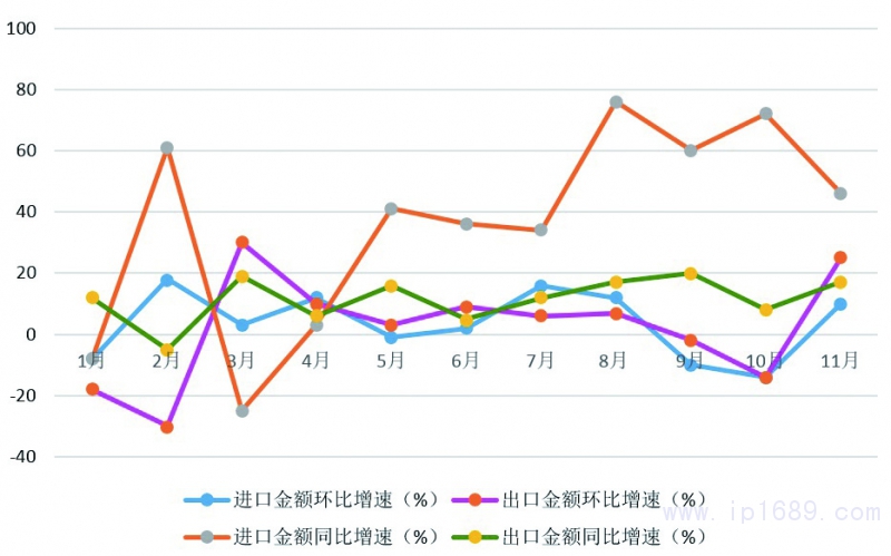 年1-11月我國塑機(jī)進(jìn)出口金額增速走勢