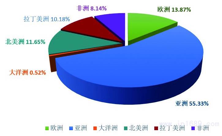 圖6?2017年1-11月我國塑機(jī)出口金額洲際分布