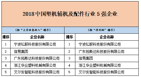 “2018中國塑料擠出成型機(jī)行業(yè)10強(qiáng)企業(yè)”的第一名是上海金緯機(jī)械制造有限公司;而“2018中國塑料中空成型機(jī)行業(yè)3強(qiáng)企業(yè)”的榜首由蘇州同大機(jī)械有限公司摘??;“2018中國塑機(jī)輔機(jī)及配件行業(yè)5強(qiáng)企業(yè)”則是由2017年未上榜的寧波弘毅科技股份有限公司摘得桂冠。