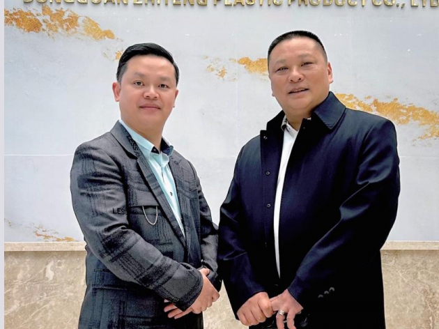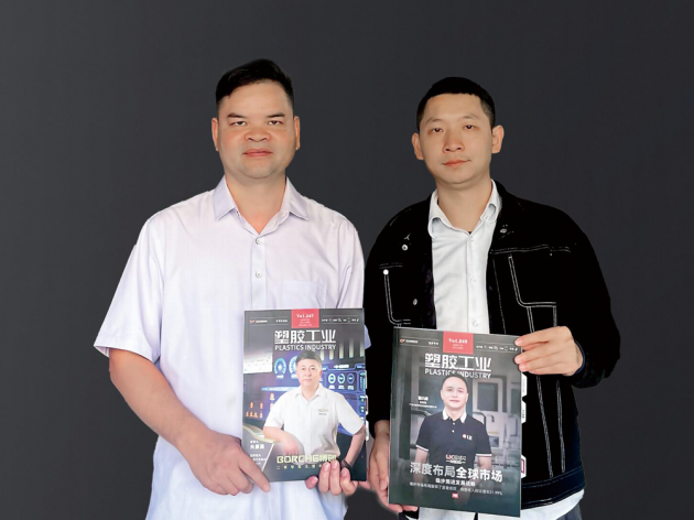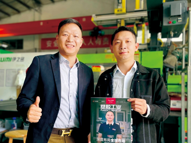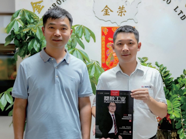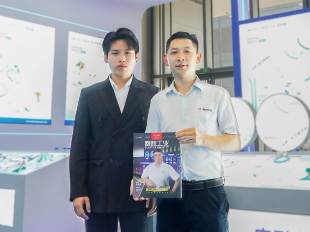 采訪日期:2024年9月11日;采訪公司:云輝(廣州)包裝制品有限公司;使用設(shè)備:海天注塑機(jī);采訪對象:總經(jīng)理助理董子強(qiáng)(左);主要產(chǎn)品:洗護(hù)塑料包裝瓶
